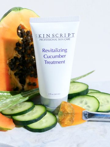 Revitalizing Cucumber Treatment is designed to exfoliate, hydrate, and gently revitalize. Perfect for all skin types, especially sensitive or dehydrated skin and those concerned with skin texture, this enzymatic treatment gently exfoliates the skin, revealing a softer, smoother complexion.
